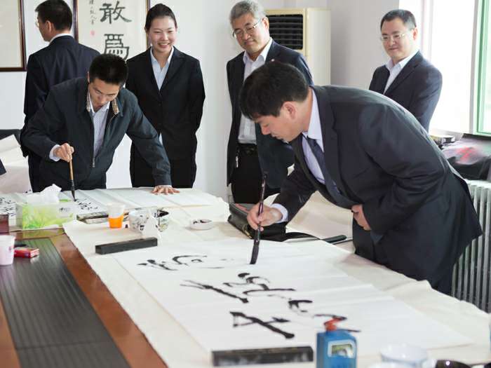 为弘扬传统文化,丰富员工业余生活,5月6日上午,呼和浩特赖瑞物业维护管理有限公司举办了首届书画艺术学习交流活动。本次活动邀请了中国书法家协会会员孟云飞博士、中国书法家协会理事张铜彦先生、中国书法家协会编辑出版委员会副主任王荣生教授、人民艺术家协会理事于瑛先生等国内知名书画大师,各位书画大师在活动现场进行了艺术创作表演,挥毫泼墨,交流技艺,为呼和浩特赖瑞物业维护管理有限公司留下了数十副墨宝,还对部分员工的书画作品进行了悉心指导。公司员工现场欣赏了书画大师的艺术创作,并聆听了有关书画艺术鉴赏知识的介绍,部分员工还在活动现场进行创作,听取书画大师的讲解示范和点评。